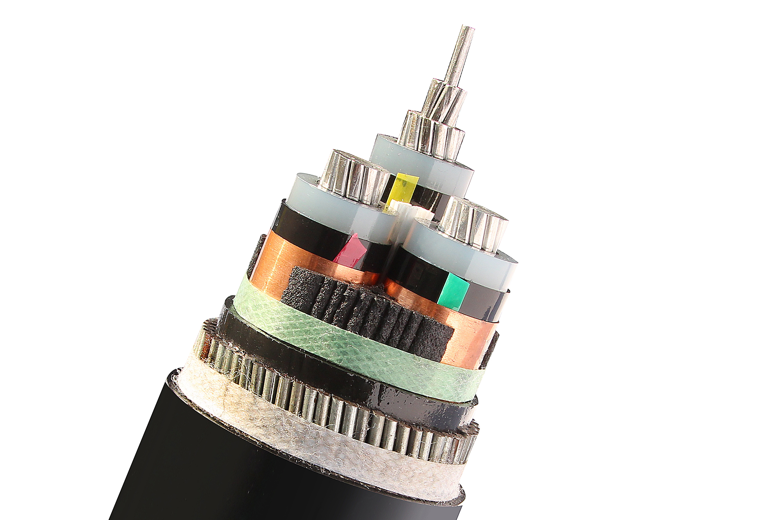 高壓電纜從內到外的組成部分包括:導體、絕緣、內護層、填充料(鎧裝)、外絕緣。